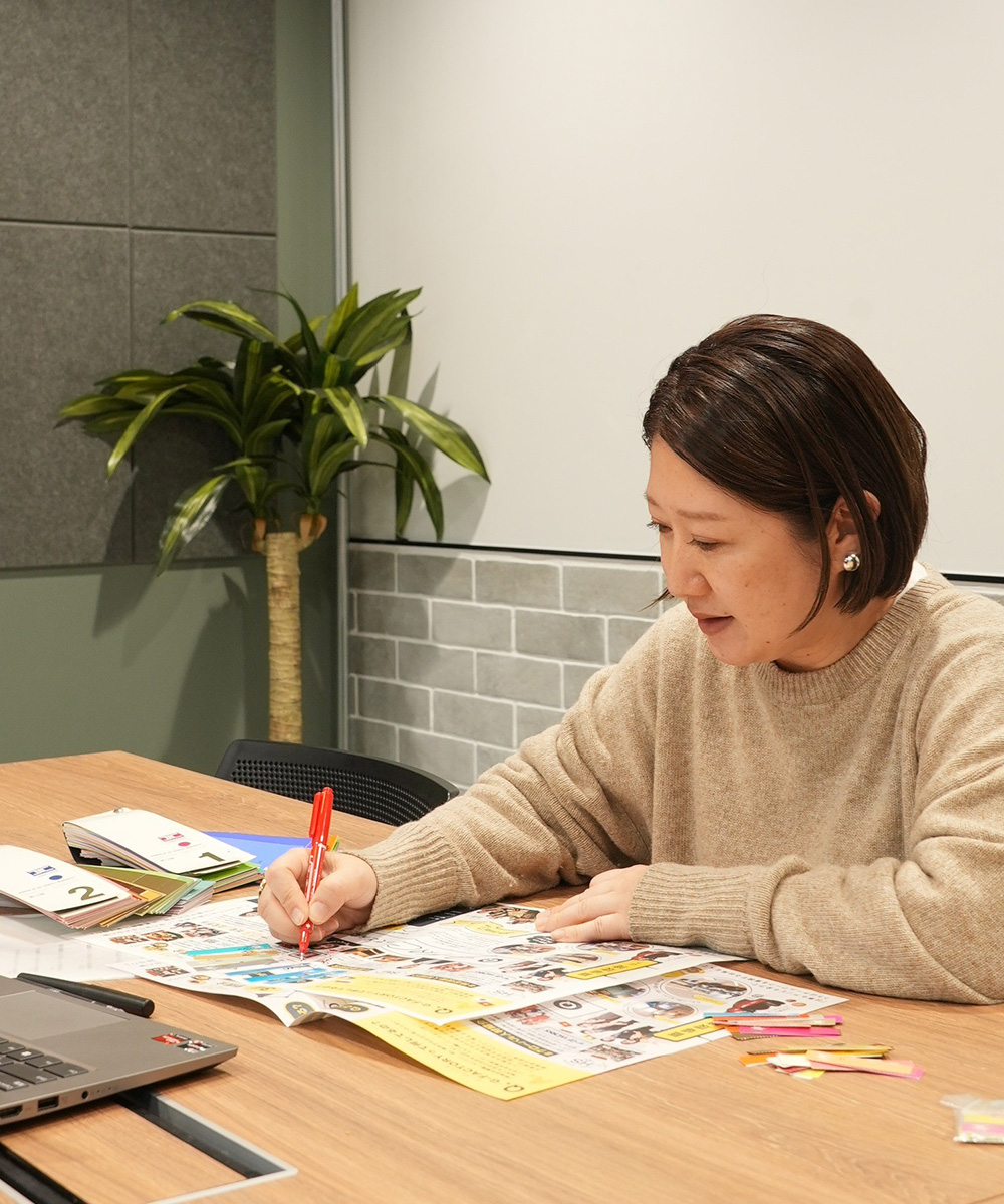 そうした中で自分は何に強いのか気付いていけると、その先本当にやりたいことが見えてくると思います。実際、今いるメンバーもデザインとは関係のない大学を卒業していますが、文章を書く力があるので、企画から文章作りも任せますし、写真も興味があるので、店舗の料理写真を撮って来てもらったりもしています。